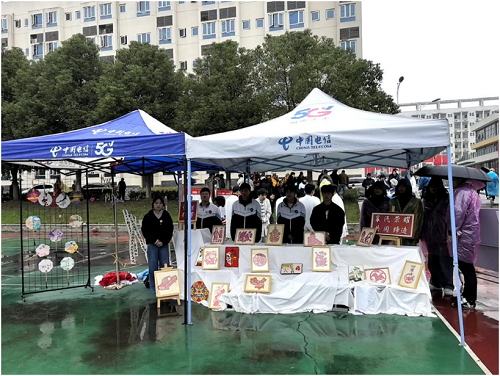 传统文化展区人气盎然,师生们流连于非遗剪纸、掐丝珐琅与漆扇作品之间。学生创作的非遗作品尽显传统美学韵味,剪纸的细腻线条勾勒出经典意象,掐丝珐琅以瑰丽色彩复原传统纹样,漆扇则凭借流光溢彩的漆艺融合古今设计,三类作品从不同维度共同诠释着传统技艺与工业文明交融的独特魅力。学院“非遗+专业”的实践课,通过“匠艺传承社”深度融入劳动教育,旨在提升技能、培育审美之余,更深植文化自信之根。