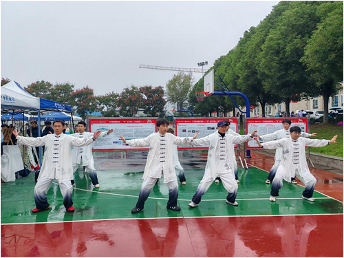 国风表演在昂扬的舞龙舞狮中拉开帷幕,翻腾的巨龙与活泼的雄狮互动,尽显学子青春朝气;随后八段锦方阵亮相,学子们衣袂飘飘,动作行云流水,一招一式尽展中华武术的深厚底蕴。学院将中国传统武术纳入体育课程,不仅强健学生体魄,更于动静开合之间,培养其沉稳专注的品格,生动诠释了刚柔并济的育人智慧。