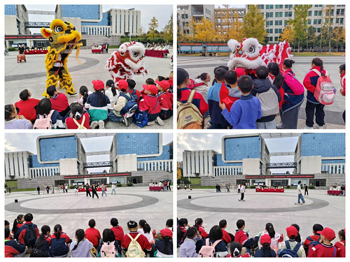 活动伊始,红旗广场上舞龙舞狮热闹开场,雄狮与小记者亲切互动,现场气氛热烈;太极表演如行云流水,引来阵阵模仿;滑板与轮滑表演则洋溢着青春活力,点燃全场热情。非遗展示区内,掐丝珐琅流光溢彩、剪纸艺术精巧细腻、漆扇工艺典雅动人,每一处都吸引大家驻足。志愿者们耐心指导小记者动手创作剪纸,孩子们手执剪刀专注裁剪,一件件充满童趣的作品在指尖诞生,传统艺术的魅力于互动中悄然流淌。